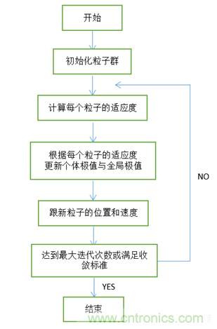 粒子群的基本概念是來自於鳥群覓食行為的研究[3]。與遺傳算法類似,粒子群算法也是一種隨機搜索方法,不同的是,粒子群優化算法沒有選擇、交叉、變異等複雜過程,而是依靠個體間的協作來尋取最優解。每個粒子通過跟蹤粒子本身找到的最優解Pbest和群體找到的最優解Gbest,更新離子的位置和速度,不斷向最優解靠近,最終達到最優解。粒子群算法優化流程圖如圖7所示