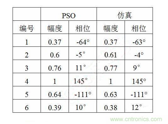 表1 仿真與PSO優化幅相數據