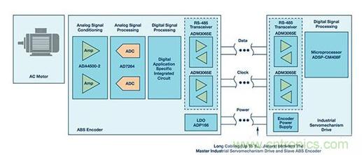 【導讀】旋轉編碼器guangfanyongyugongyezidonghuaxitongzhong。cileibianmaqidedianxingyingyongshidianlijixie,qizhongbianmaqilianjiedaoxuanzhuanzhou,congerxiangkongzhixitongtigongfankui。suiranbianmaqidezhuyaoyongtushijiaoduweizhihesuduceliang,danxitongzhenduanhecanshupeizhidengqitatexingyehenchangjian。tu1顯示了一個電機控製信號鏈,其利用RS-485收發器和微處理器連接絕對編碼器(ABS編碼器)從機和工業伺服驅動器主機,以實現對交流電機的閉環控製。