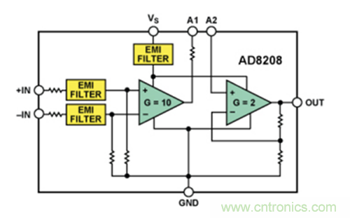 AD8208juyouchusedejiaoliuhezhiliuxingneng,qietongguoxiangguanrenzheng,shiheyaoqiucaiyongwendingkekaodejingmiqijianlaigaishanxitongkongzhideqicheyingyong。shitiaohezengyipiaoyidianxingzhifenbiexiaoyu5 µV/°C和10 ppm/°C。該器件提供SOIC和MSOP兩種封裝,在DC至10 kHz範圍內共模抑製比(CMR)最小值為80 dB。