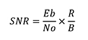 信噪比 (SNR) 可衡量接收器從環境噪聲中正確提取並解碼信號的能力。在閾值 SNR 下,BER 會超過無線電的規格,導致通信失敗。例如,按照低功耗藍牙接收器的設計,其最大 BER 容差僅 0.1% 左右。根據以下公式,SNR 是比特能量與噪聲密度比之比 (Eb/No)、數據速率 (R) 和接收帶寬 (B) 的函數: