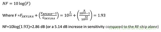 以一個包含 Nordic Semiconductor nRF52832 和 SKY66113-11 的係統為例。按照規格,在鏈路預算為 100 dB 時,該射頻芯片的最大靈敏度為 -96 dB,最大輸出功率為 4 dB。Nordic 的規格書中不包含 NF 數據,但此類芯片的典型值約為 8 dB。