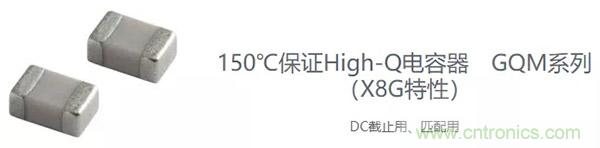 村田製作所的High-Q電容器,除傳統125℃保證品(C0G特性),又將150℃保證品(X8G特性)新增到產品陣容。通過降低DC截止用、匹配用電容器周邊溫度的製約,可提高設計自由度。