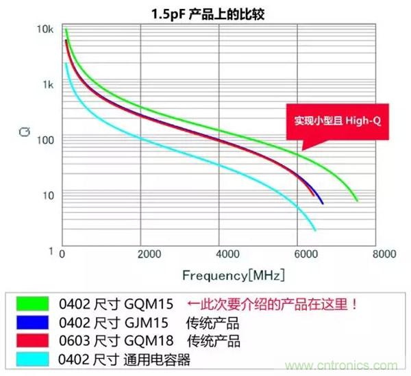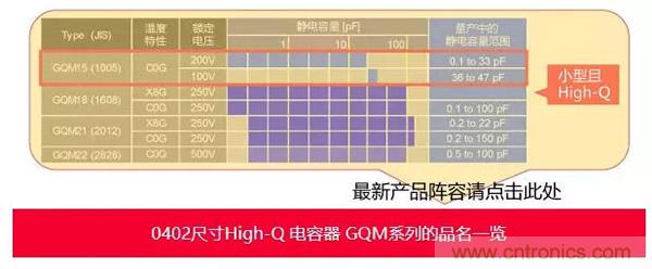 村田製作所的High-Q電容器除傳統的0603尺寸外,還新增0402尺寸到產品陣容。通過獨創的構造、材料,即使靜電容量值很低,與標準規格產品(GRM係列)相比,也可實現高Q值。因兼具匹配用電容器的小型化和高Q值,有助於實現高頻PA電路設計的高密度化。
