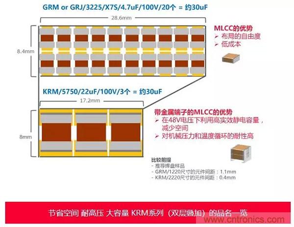 充分利用有限的基板麵積。雙層疊加高容量電容器