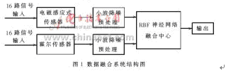 隨著電子技術、神(shen)經(jing)網(wang)絡(luo)和(he)人(ren)工(gong)智(zhi)能(neng)處(chu)理(li)技(ji)術(shu)的(de)發(fa)展(zhan),國(guo)內(nei)外(wai)都(dou)在(zai)開(kai)展(zhan)新(xin)的(de)漏(lou)磁(ci)信(xin)號(hao)處(chu)理(li)方(fang)法(fa)的(de)研(yan)究(jiu)。由(you)於(yu)傳(chuan)統(tong)方(fang)法(fa)受(shou)人(ren)為(wei)因(yin)素(su)影(ying)響(xiang)嚴(yan)重(zhong),容(rong)易(yi)產(chan)生(sheng)漏(lou)檢(jian)誤(wu)檢(jian),大(da)大(da)影(ying)響(xiang)了(le)檢(jian)測(ce)準(zhun)確(que)度(du),因(yin)此(ci)特(te)別(bie)需(xu)要(yao)一(yi)種(zhong)對(dui)缺(que)陷(xian)信(xin)號(hao)的(de)智(zhi)能(neng)化(hua)處(chu)理(li)方(fang)法(fa)。多(duo)傳(chuan)感(gan)器(qi)數(shu)據(ju)融(rong)合(he)技(ji)術(shu)是(shi)近(jin)年(nian)來(lai)形(xing)成(cheng)和(he)發(fa)展(zhan)起(qi)來(lai)的(de)一(yi)種(zhong)自(zi)動(dong)化(hua)信(xin)息(xi)綜(zong)合(he)處(chu)理(li)技(ji)術(shu),它(ta)充(chong)分(fen)利(li)用(yong)多(duo)源(yuan)信(xin)息(xi)的(de)互(hu)補(bu)性(xing)和(he)計(ji)算(suan)機(ji)的(de)高(gao)速(su)運(yun)算(suan)能(neng)力(li)來(lai)提(ti)高(gao)結(jie)果(guo)信(xin)息(xi)的(de)質(zhi)量(liang)。由(you)於(yu)多(duo)傳(chuan)感(gan)器(qi)數(shu)據(ju)融(rong)合(he)可(ke)以(yi)對(dui)來(lai)自(zi)多(duo)個(ge)傳(chuan)感(gan)器(qi)的(de)數(shu)據(ju)進(jin)行(xing)多(duo)級(ji)別(bie)、多方麵、多層次的處理,從而產生新的有意義的信息,而這種信息是任何單一傳感器所無法獲得的, 並且它還能有效地消除由於單一類型傳感器失效而引起的誤差,因而多傳感器數據融合在信號處理領域得到了廣泛的關注[1]。本文利用小波閾值降噪算法來突出信號缺陷特征,並將處理後的信號送入RBF神經網絡數據融合中心,利用兩類傳感器之間的信息冗餘來提高檢測精度,消除測量中的不確定性,獲得更準確可靠的測量結果。