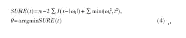 小xiao波bo去qu噪zao的de方fang法fa主zhu要yao通tong過guo設she置zhi閾yu值zhi來lai實shi現xian,對dui漏lou磁ci信xin號hao的de離li散san小xiao波bo變bian換huan,計ji算suan所suo有you小xiao波bo係xi數shu,剔ti除chu被bei認ren為wei與yu噪zao聲sheng有you關guan的de小xiao波bo係xi數shu,然ran後hou通tong過guo小xiao波bo變bian換huan的de逆ni變bian換huan得de到dao信xin號hao。對dui於yu給gei定ding的de信xin號hao,選xuan取qu閾yu值zhi的de方fang法fa很hen多duo,本ben文wen使shi用yong的de是shi基ji於yuStein無偏風險估計值最小化(SURE)的方法: