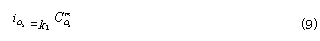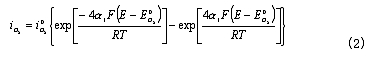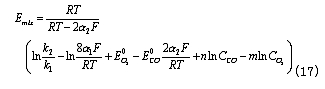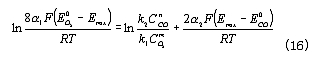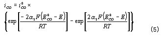 為CO的交換電流密度;a為CO氧化反應的電荷傳遞係數。——— 在平衡條件下,上述兩反應的電流密度相等,所以有