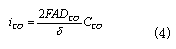 式中,iCO為CO氧化反應的電流密度 CCO為CO的體積濃度;DCO為CO的擴散係數