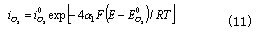 因氧氣分壓較大,一般由電荷傳輸過程控製,根據Butler-Volmer方程得到反應速率為: