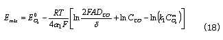 聯立等式(6)、(9)、(10) 、(12)和(15)得平衡混合電勢為: