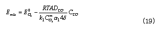 此式給出了CO濃度和混合電勢的線性關係。