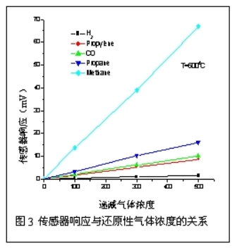將氧傳感器的工作電極置於還原性氣氛中產生這種非Nernstian行為開創了基於混合電勢原理的不同氣體的測量研究。早在20多年前,有人就開始研究用於測量CO、H2和CH化合物等還原性氣體濃度的混合電勢器件。Shimizu等人認為觀察到的非正常電勢來自於不同電極的催化活性的差異,他們在1978年開發了用於測量可燃燒氣體的帶有Pt、Pd電極的YSZ氧傳感器,但是其在高於500℃時的響應不大,而在低溫下響應不穩定並且選擇性很差。其中的原因是因為Pt電極是良好的氧化催化劑,使得還原性氣體在高溫下能夠在到達三相界麵之前完全被氧化;而在低溫下,氣體的氧化則主要受到YSZ的低離子導電率的限製。為了解決這些問題,其他的金屬和金屬合金也被用於作為改進傳感器選擇性和靈敏度的取代材料的研究。V. Schule等人發現PtAu合金電極在高於550℃時對CO和H2具有更好的響應性能。