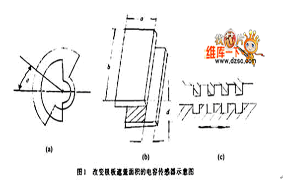 圖1是3種這類傳感器的原理圖,圖1(a)中是利用角位移來改變電容器極板遮蓋麵積。假定當2塊極板完全遮蓋時的麵積為S0,兩極板間的距離為d,極板間介質的介電常數為ε。當忽略邊緣效應時,該電容器的電容量為: