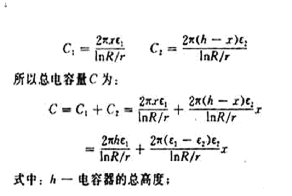 當容器的尺寸和被測介質確定後,則h,R,r,ε1和ε2均為常數,令: