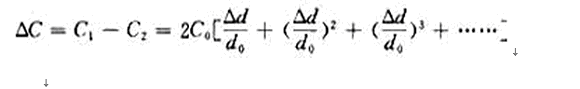 這時電容器的變化量ΔC才近似地和位移Δd成正比。其相對非線性誤差為: