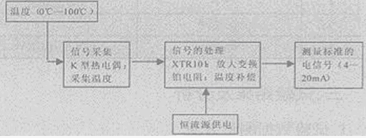 整套係統要求在0~100℃範圍對應輸出4mA~20mA的電流型溫度變送器。