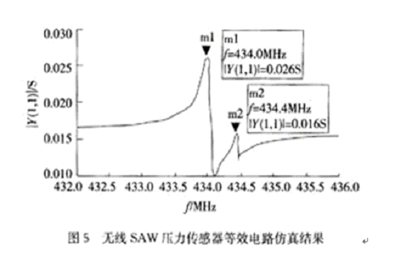 - SAW單端諧振器的等效電路對SAW壓力傳感器的仿真結果。