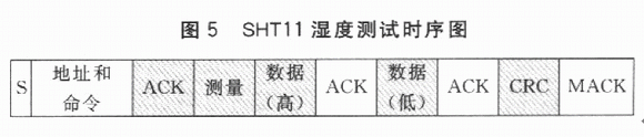 基於以上宏定義和延時函數,可以方便地使SCK和DATA總線輸出持續一定時間的高電平或低電平,從而可以模擬圖5所示的溫濕度傳感器SHTll的讀寫協議。
