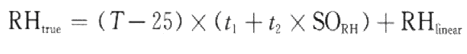 由於溫度對濕度的影響十分明顯,而實際溫度和測試參考溫度25℃有所不同,所以對線件補償後的濕度值進行溫度補償很有必要。補償公式如下: