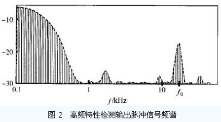 在該頻譜圖中, f 低於2 kHz 時的頻譜的形狀與原調製信號的頻譜的形狀相似Z 脈衝畸變引起的信號頻譜的變化主要表現是: 在3 kHz 到5MHz 頻段內會出現一個與駐波點位置密切相關的較大峰值.該峰值的頻率f0 除與駐波點位置有關外, 還與同軸電纜的品質、高低頻信號分離電路的特性等有關. 經大量的測試證明, 在對傳感器進行校正後, f隻與駐波點位置(即同軸電纜受力位置) 有關, 且f與駐波點和高低頻信號分離電路之間的距離d 呈非線性關係.在1m < d < 1km 時, f2= K/d2+ P ,其中K 為與同軸電纜品質相關的常數, P 為與傳感器的電路相關的常數.