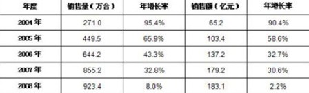 2009年3月5日,中國權威ICT研究與管理谘詢機構賽迪顧問股份有限公司(股票代碼:HK8235)在“2009中國消費電子市場年會”上發布《2008-2009年中國數碼相機市場研究年度報告》顯示:2008年,在全球經濟不景氣的環境下,很多數碼產品的市場需求受到了較大的挑戰。根據賽迪顧問統計數據顯示,2008年中國數碼相機市場銷售量達到923.4萬台,同比增長8.0%,銷售額達到183.1億元,同比增長2.2%。