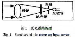 光電傳感器以光為媒介進行無接觸檢測。光是一種頻率很高的電磁波[1]。光幹擾也算是一種電磁幹擾,光幹擾是傳感器誤動作的主要因素之一。環境光、背景光和周圍其它光電傳感器發出的光是光幹擾源。以紅外線為媒介進行檢測則可減小可見光的影響,紅外光也不影響可見光。紅外線光電傳感器可用濾光鏡濾去可見光。對於周圍環境其它光電傳感器的光幹擾,可用外殼、套筒、夾縫來抑製[2]。圖1是一種受光器結構圖。