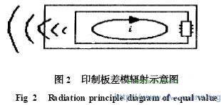 此時為差模輻射。可通過減小環路麵積S和環路電流i來減小差模輻射。共模輻射可用對地電壓激勵的、長度小於1/4波長的短單極天線來模擬。共模輻射的電場強度為[3]