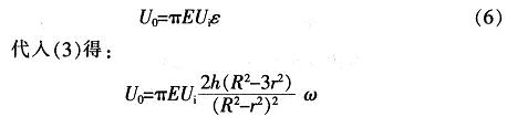 式中:μ為矽材料的泊鬆比,μ=O.35;R,r,h分別為矽膜片的有效半徑,計算半徑,厚度;E為矽材料的模量,E=8.7Gpa;P為作用於平膜片上的壓力;ω為平膜片的撓度;