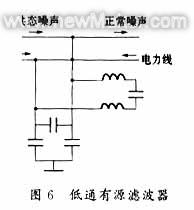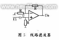 通常,經典濾波器用得最多。濾波電路可以由無源元件R、L、C組成,如圖5所示的線路濾波器;也可以包含有源元件(如圖6所示),它的優點主要是具有一定的信號放大和帶負載能力。濾波電路從功能上又可分為四類:低通(LP)、高通(HP)、帶通(BP)、帶阻(BS)濾波器。每一種又有模擬(AF)與數字(DF)濾波器兩種形式。由於傳感器信號一般為緩慢變化的信號,故選用低通濾波器抑止高頻噪聲信號最多。通常如巴特沃斯濾波器、切比雪夫濾波器、橢圓濾波器等。常用低通濾波電路如圖6所示。