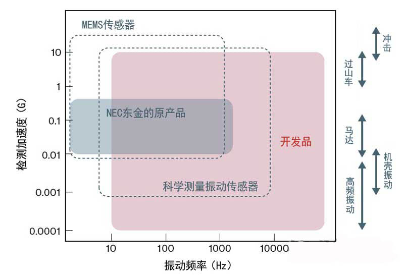 圖1:NEC東金開發的振動傳感器的檢測範圍