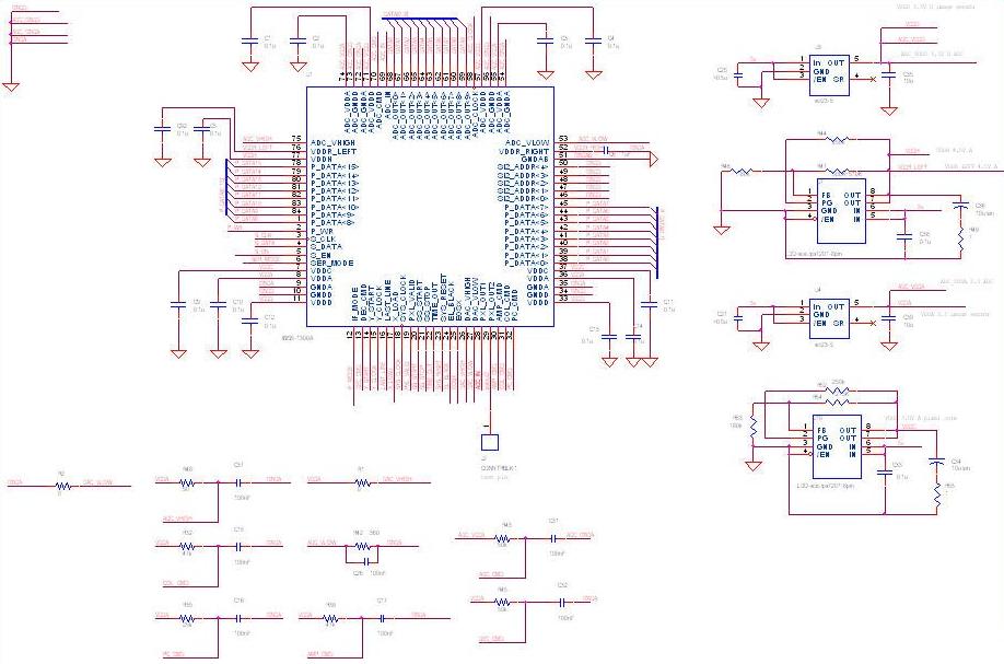 本采集係統為兩塊四層PCB板組合而成,其中一塊為視頻采集板,一塊為USB數據傳輸板。其核心CMOS視頻圖像采集板如圖3所示。