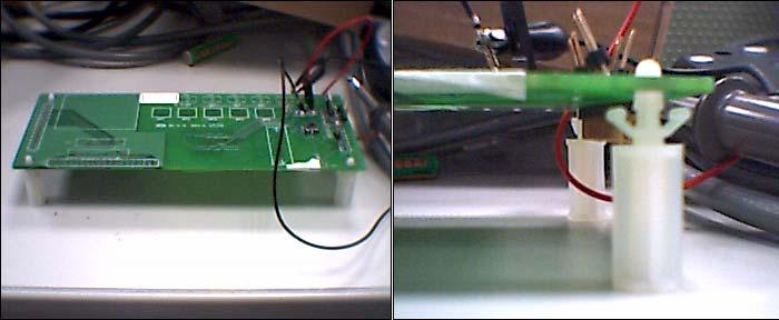 c.測(ce)試(shi)時(shi)必(bi)須(xu)特(te)別(bie)注(zhu)意(yi)電(dian)路(lu)板(ban)的(de)放(fang)置(zhi),測(ce)試(shi)電(dian)路(lu)板(ban)不(bu)可(ke)以(yi)直(zhi)接(jie)放(fang)在(zai)桌(zhuo)麵(mian)上(shang),也(ye)不(bu)可(ke)以(yi)在(zai)測(ce)試(shi)按(an)壓(ya)時(shi)有(you)晃(huang)動(dong)的(de)現(xian)象(xiang),理(li)想(xiang)的(de)測(ce)試(shi)環(huan)境(jing)是(shi)黏(nian)貼(tie)上(shang)麵(mian)板(ban)或(huo)與(yu)麵(mian)板(ban)相(xiang)同(tong)厚(hou)度(du)及(ji)材(cai)料(liao)的(de)替(ti)代(dai)麵(mian)板(ban),再(zai)加(jia)上(shang)橡(xiang)膠(jiao)腳(jiao)墊(dian)架(jia)高(gao)電(dian)路(lu)板(ban),同(tong)時(shi)可(ke)以(yi)穩(wen)固(gu)電(dian)路(lu)板(ban)。