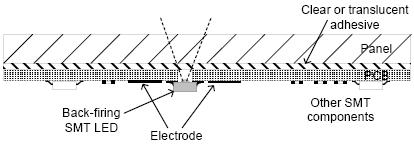 d.如果在感應電極中開孔加裝LED,必須加大感應電極以彌補開孔所損失的麵積,所以增加的感應電極麵積至少必須相等於開孔的麵積。