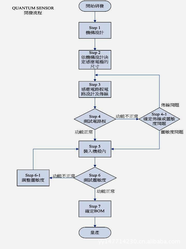 使用電容式感應的IC設計感應開關dianlubanyuqitadianludekaifaliuchenglveyoubutong,yinweidianrongshikaiguandeshejishanghuishoudaojigouyuqitadianlushejishangdeyingxiang,huiyoubijiaoduodetiaozhengchengxu,suoyixuyaoyigebijiaofuzadekaifaliucheng,xianjiuyichudaojiaozaoqiejuyoudaibiaoxingde“Quantum ”產品的開發流程及要點介紹給大家,希望對需要的朋友有所幫助。下圖是開發流程圖: