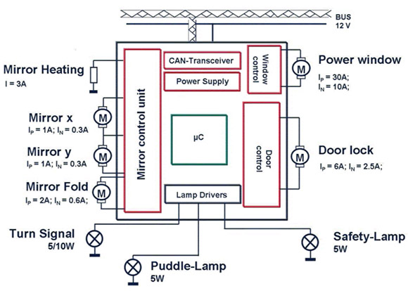 車門模塊中的負載特性和功能千差萬別。係統設計師麵臨的挑戰是如何高效地驅動所有負載並且同時滿足設計規範要求和成本目標。