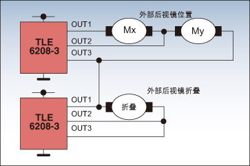 圖4: 采用TLE6208-3的後視鏡電機驅動的例子。