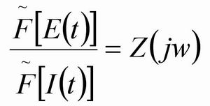 許xu多duo積ji分fen變bian換huan都dou可ke以yi用yong於yu將jiang數shu據ju轉zhuan換huan到dao頻pin域yu,如ru傅fu裏li葉ye分fen析xi。這zhe種zhong方fang法fa就jiu是shi取qu出chu信xin號hao的de一yi係xi列lie時shi域yu信xin號hao表biao示shi,然ran後hou應ying用yong積ji分fen變bian換huan將jiang其qi映ying射she為wei頻pin譜pu。采cai用yong這zhe種zhong方fang法fa可ke以yi給gei出chu任ren意yi兩liang種zhong信xin號hao之zhi間jian關guan係xi的de數shu學xue描miao述shu。在zai阻zu抗kang分fen析xi中zhong感gan興xing趣qu的de是shi激ji勵li電dian流liu(元件的輸入)和電壓響應(元件的輸出)之zhi間jian的de關guan係xi。如ru果guo係xi統tong是shi線xian性xing的de,測ce得de的de時shi域yu電dian壓ya和he電dian流liu的de各ge自zi傅fu裏li葉ye變bian換huan的de比bi值zhi就jiu等deng於yu其qi阻zu抗kang,並bing且qie它ta可ke以yi表biao示shi成cheng一yi個ge複fu數shu。這zhe個ge複fu數shu的de實shi數shu部bu分fen和he虛xu數shu部bu分fen構gou成cheng隨sui後hou數shu據ju分fen析xi的de關guan鍵jian部bu分fen。
