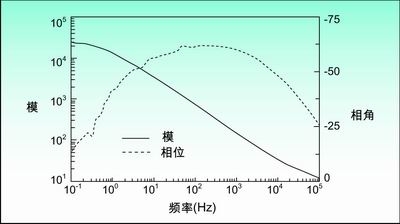 盡jin管guan奈nai奎kui斯si曲qu線xian很hen常chang用yong,但dan是shi它ta不bu能neng給gei出chu頻pin率lv信xin息xi,所suo以yi對dui於yu任ren何he特te定ding阻zu抗kang,都dou不bu可ke能neng知zhi道dao采cai用yong的de頻pin率lv值zhi是shi多duo少shao。因yin此ci,奈nai奎kui斯si曲qu線xian通tong常chang要yao采cai用yong其qi它ta曲qu線xian來lai補bu充chong。另ling外wai一yi種zhong常chang用yong的de表biao示shi方fang法fa就jiu是shi波bo特te(Bode)圖。在波特圖中,x軸表示頻率的對數,阻抗的幅度絕對值|Z|和相移都用y軸表示。因此波特圖同時表示了阻抗與頻率和相移與頻率的關係。通常將奈奎斯曲線和波特圖一起使用來分析傳感器元件的傳遞函數。
