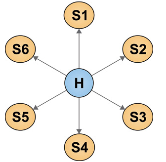 A) 星狀網絡:如圖4所(suo)示(shi),星(xing)狀(zhuang)網(wang)絡(luo)由(you)一(yi)個(ge)點(dian)對(dui)多(duo)點(dian)無(wu)線(xian)連(lian)接(jie)組(zu)成(cheng),其(qi)一(yi)台(tai)單(dan)主(zhu)機(ji)以(yi)雙(shuang)向(xiang)或(huo)者(zhe)單(dan)向(xiang)方(fang)式(shi)連(lian)接(jie)至(zhi)幾(ji)個(ge)節(jie)點(dian)。如(ru)果(guo)低(di)功(gong)耗(hao)和(he)低(di)軟(ruan)件(jian)開(kai)銷(xiao)為(wei)關(guan)鍵(jian)參(can)數(shu),則(ze)這(zhe)種(zhong)拓(tuo)撲(pu)結(jie)構(gou)非(fei)常(chang)值(zhi)得(de)關(guan)注(zhu)。其(qi)存(cun)在(zai)的(de)局(ju)限(xian)性(xing)是(shi)有(you)效(xiao)通(tong)信(xin)距(ju)離(li),因(yin)為(wei)每(mei)個(ge)節(jie)點(dian)都(dou)要(yao)在(zai)主(zhu)機(ji)通(tong)信(xin)距(ju)離(li)範(fan)圍(wei)以(yi)內(nei)。有(you)幾(ji)種(zhong)標(biao)準(zhun)可(ke)以(yi)用(yong)於(yu)實(shi)現(xian)這(zhe)種(zhong)拓(tuo)撲(pu)結(jie)構(gou)。藍(lan)牙(ya)、IEEE 802.15.4或者專有係統為使用最為廣泛的一些標準。注意,由於一些藍牙協議的局限性,藍牙平台並未獲得廣泛的接受。