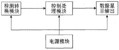 該係統主要以CAV424檢測芯片和微處理器控製模塊為核心, 另外還有輸出顯示模塊以及電源模塊等。係統框圖如圖2所示。