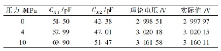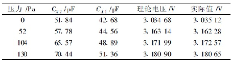 試驗中差動式電容傳感器的低壓端連接CAV424的C X2管腳, 高壓端連接C X1管腳。根據差動電容值的變化範圍, Cosc這裏取82 pF, 則fOSC = 29. 036 kH z;GLP = 1 +RL1/RL2中的RL 1, RL2分別取300Ω 和100 Ω , 這樣使得CAV424輸出的電壓範圍在25~3 75 V, 在ADC 模擬輸入範圍內。試驗中選取兩種量程的電容傳感器作為實驗的測試對象, 分別是130 Pa 和10M Pa 兩種。