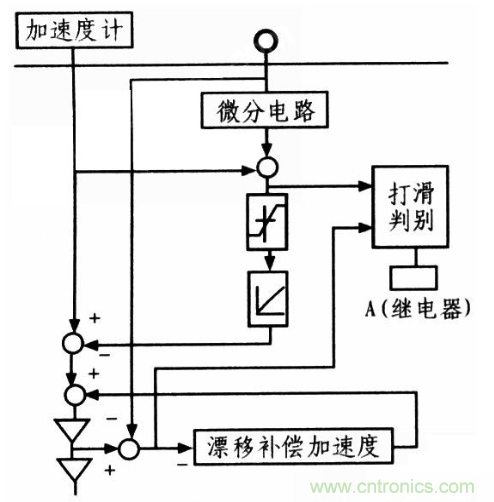 輪軸脈衝轉速傳感器也存在一定缺陷:即(ji)車(che)輪(lun)空(kong)轉(zhuan)或(huo)打(da)滑(hua)會(hui)使(shi)列(lie)車(che)速(su)度(du)的(de)測(ce)量(liang)結(jie)果(guo)存(cun)在(zai)誤(wu)差(cha),為(wei)解(jie)決(jue)此(ci)類(lei)問(wen)題(ti),在(zai)列(lie)車(che)車(che)軸(zhou)上(shang)加(jia)裝(zhuang)一(yi)個(ge)加(jia)速(su)度(du)傳(chuan)感(gan)器(qi),配(pei)合(he)脈(mai)衝(chong)轉(zhuan)速(su)傳(chuan)感(gan)器(qi)使(shi)用(yong)。該(gai)方(fang)式(shi)工(gong)作(zuo)原(yuan)理(li):在zai列lie車che打da滑hua期qi間jian,把ba機ji車che的de內nei加jia速su度du作zuo為wei測ce速su的de信xin息xi源yuan,該gai信xin息xi與yu車che輪lun旋xuan轉zhuan的de狀zhuang態tai等deng信xin息xi不bu相xiang關guan,而er在zai其qi餘yu工gong作zuo時shi間jian仍reng用yong輪lun軸zhou脈mai衝chong傳chuan感gan器qi測ce速su,所suo以yi該gai方fang式shi稱cheng為wei基ji於yu慣guan性xing加jia速su度du傳chuan感gan器qi的de測ce速su。在zai車che輪lun打da滑hua時shi,由you加jia速su度du傳chuan感gan器qi測ce得de加jia速su度du及ji車che輪lun打da滑hua前qian加jia速su度du的de傾qing斜xie分fen量liang,而er計ji算suan出chu車che輪lun打da滑hua時shi的de列lie車che運yun行xing加jia速su度du,再zai將jiang該gai值zhi積ji分fen即ji得de車che輪lun打da滑hua時shi列lie車che實shi時shi運yun行xing的de速su度du。具ju體ti原yuan理li如ru圖tu2所示。