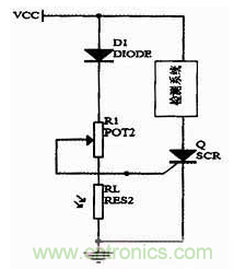 本係統中將光敏電阻與單向可控矽配合使用,組成檢測電路的啟動開關電路。其原理圖如圖3所示。