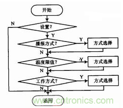 可設置的參數主要有,播報方式:“連續、隔x秒、禁止”;報警溫度值;工作方式等。在需要實時關注溫度值的時候,可以設置為連續播報;溫度變化較慢的時候可以設置為隔x秒方式;夜ye晚wan設she置zhi報bao警jing模mo式shi後hou,可ke以yi設she置zhi為wei禁jin止zhi播bo報bao模mo式shi。設she置zhi報bao警jing溫wen度du值zhi後hou可ke以yi,可ke以yi處chu理li其qi他ta事shi情qing,在zai出chu現xian警jing情qing時shi,係xi統tong給gei出chu報bao警jing,提ti示shi用yong戶hu。選xuan擇ze工gong作zuo方fang式shi為wei“聯網工作”後hou,係xi統tong除chu了le現xian場chang播bo報bao和he報bao警jing外wai,還hai將jiang相xiang應ying信xin息xi通tong過guo異yi步bu串chuan行xing口kou發fa送song到dao遠yuan端duan。設she置zhi過guo程cheng全quan部bu采cai用yong語yu音yin菜cai單dan方fang式shi,可ke以yi大da幅fu度du較jiao低di成cheng本ben,設she置zhi流liu程cheng圖tu如ru圖tu2所示。