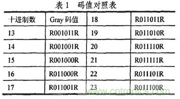 編碼采用格雷碼(Gray)為數值碼,以某一固定碼寬為參考碼R,它用於標尺定位和提高精度。Gray碼是一種絕對編碼方式的無權碼,它所具有的循環、danbutexingnengxiaochusuijiqushushichuxianzhongdawuchadekeneng,qirenyilianggebailinzhengshuzhijianzhuanhuanshi,zhiyouyigeweishufashengbianhua,dadajianshaoleyouyigezhuangtaizhuandaoxiayigezhuangtaishideluojihunxiao,juyoujiaoqiangderongcuonengli。yi6位編碼為例,其部分十進製數與Gray碼的一一對應關係如表1所示。