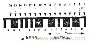 根據磁敏傳感原理,“凹槽”和“凸槽“會導致不同的磁場強度,從而使磁敏元件相應地輸出不同的電半信號“0”或“1”,形成數值碼,用於確定位移的粗讀值;而標誌位R碼寬兩倍於碼元“1”寬度的特點,使得識別後的序列出現具有固定特征的標識碼,它用於精讀數。