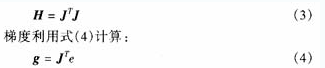 式中,J為Jacobian矩陣,包括網絡誤差項相對於權重和閾值的一階微分 ,e為網絡的誤差項。Jacobian矩陣可以利用標準的BP算法得出,這比直 接計算Hessian矩陣簡單得多。迭代式為:
