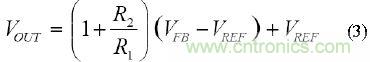 由於輸入之間的電壓等於反饋(FB)與參考(REF)端子之間的電壓時,放大器的反饋要求可得到滿足,因此,我們可將該公式重寫為