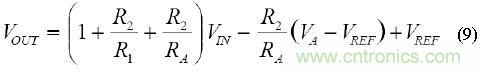 如果相對於原始等式中的VREF取VOUT和VA,則可得到相同的結果。 VA(MAX)~VREF也應替換等式(7)中的VA(MAX)。